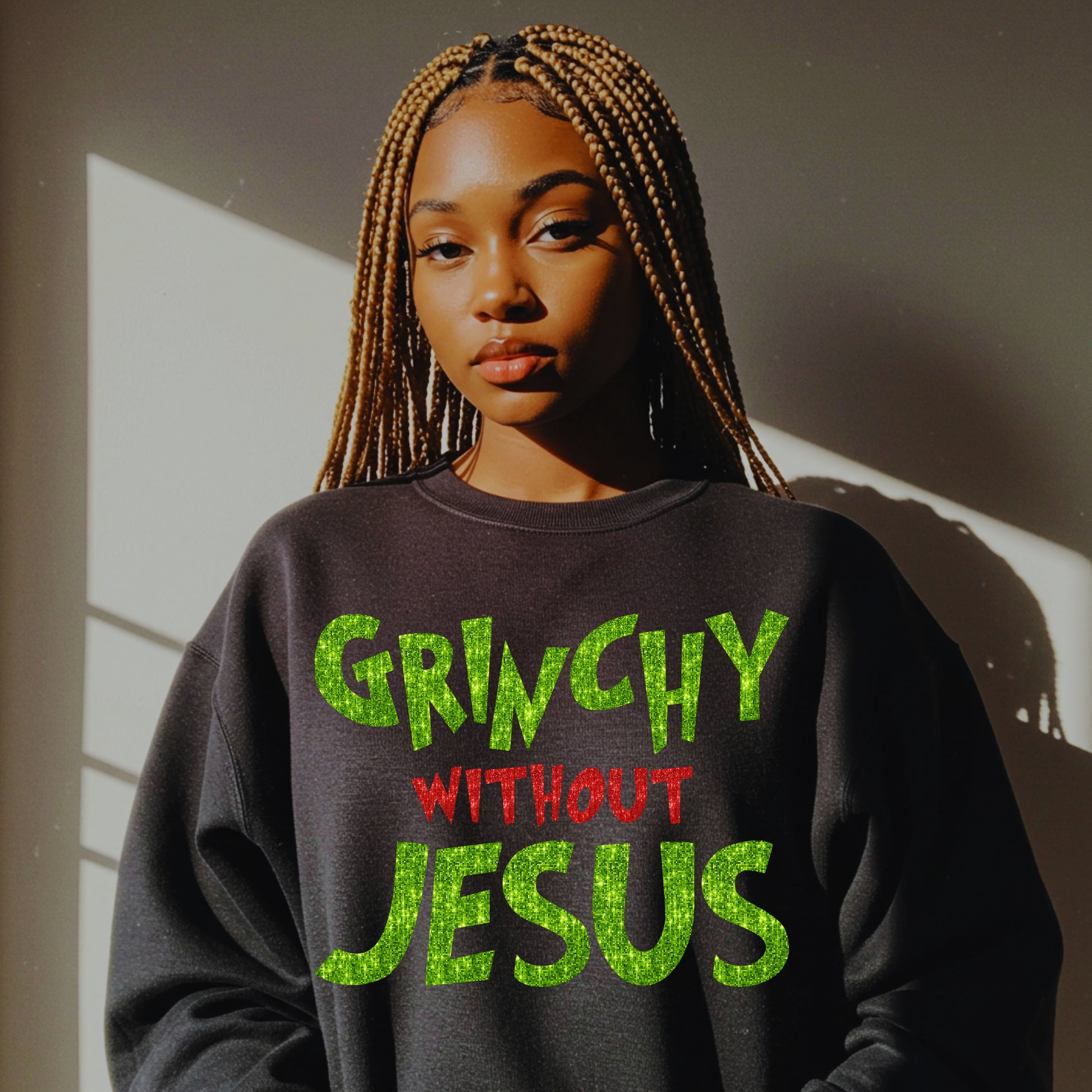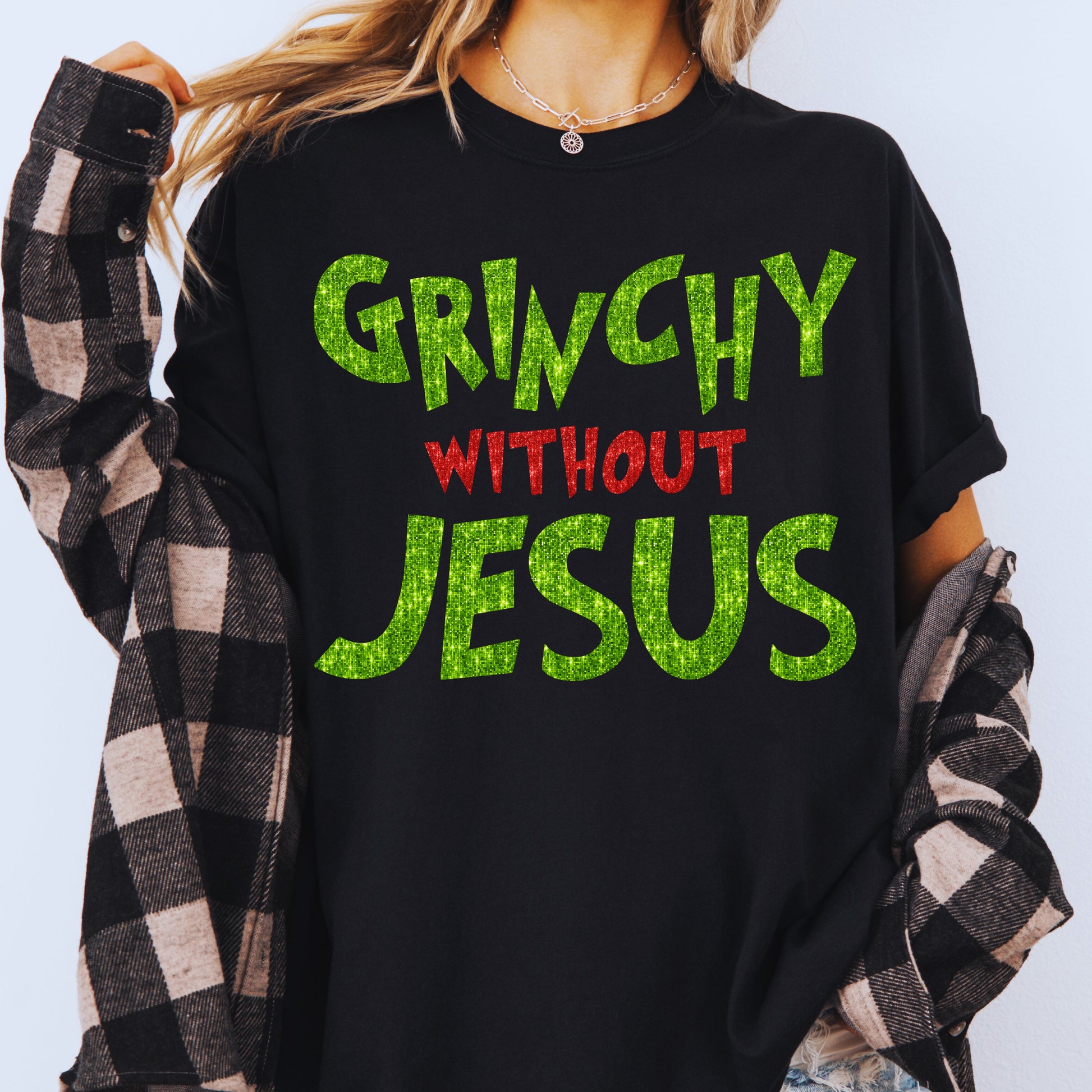 Christian Christmas Gift: Grinchy Glitter Text Funny Christmas PNG Bundle of 2 | Grinchy Without Jesus | Holiday Sublimation | Ornament PNG