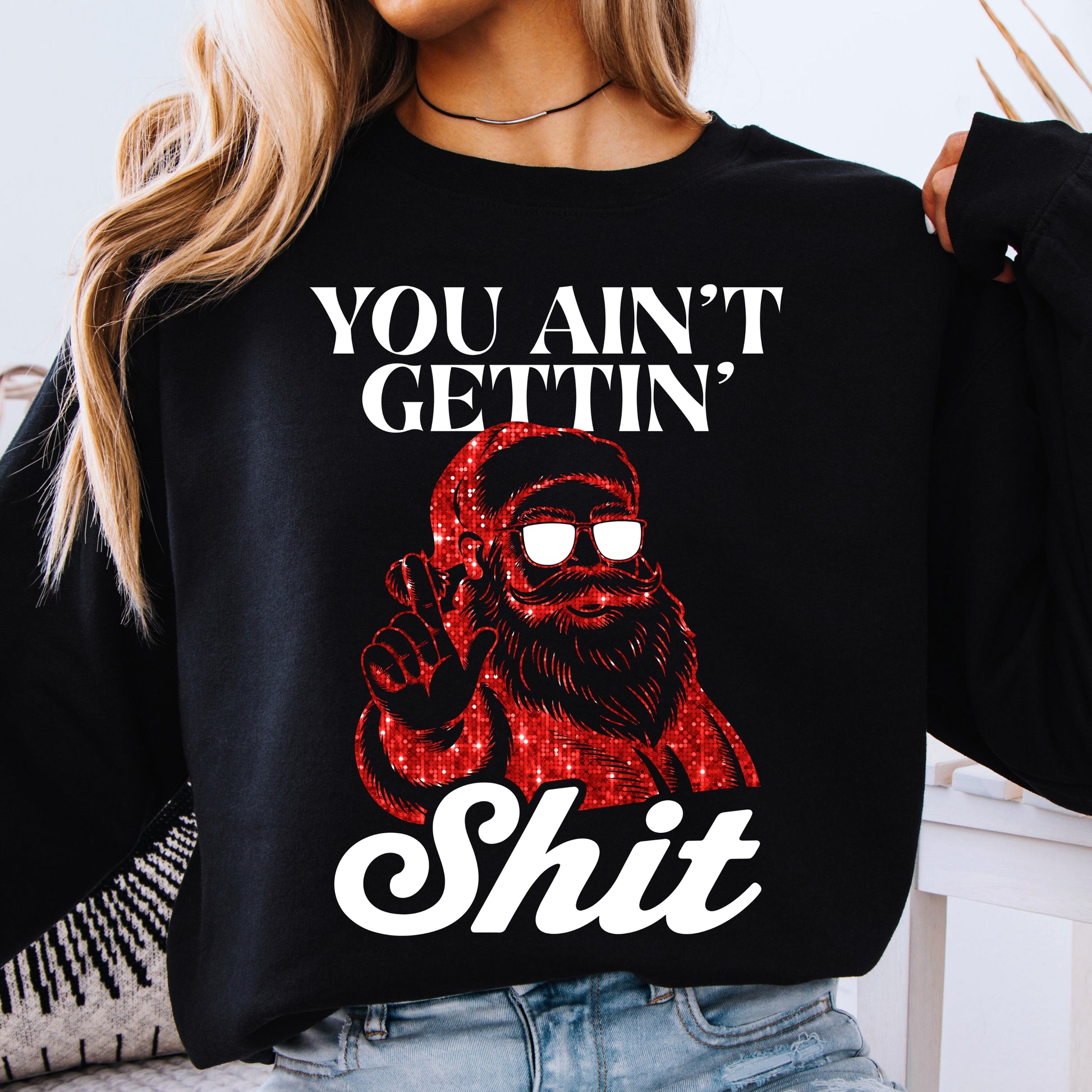 You Ain’t Gettin’ Shit Santa PNG Bundle | Faux Red Glitter Christmas Design | Funny Holiday Sublimation | White + Black DIY Digital Download